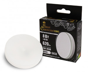 ВС лампа св/д GX53 8W (620lm) 4000K 4K 73x27 матов, пласт/алюм. IC-драйвер 2г