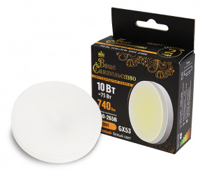 ВС лампа св/д GX53 10W (740lm) 2700K 3K 73x27 матов, пласт/алюм. IC-драйвер 2г